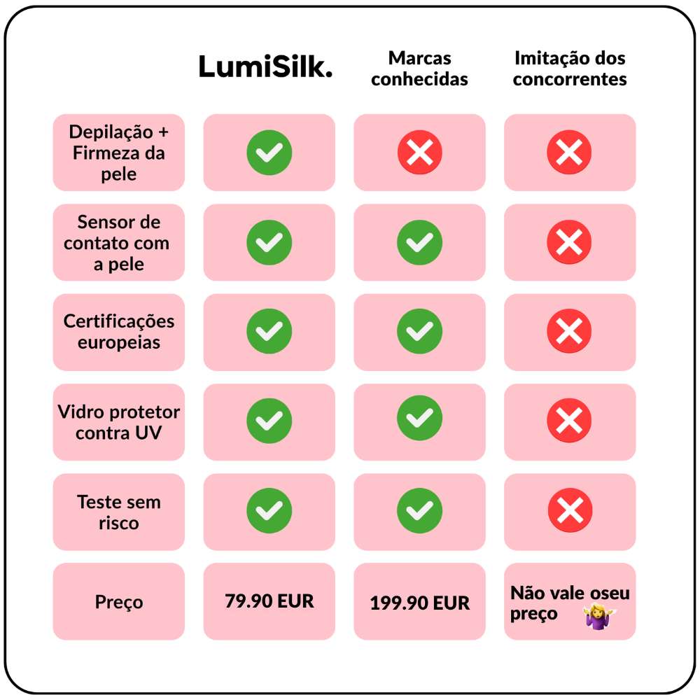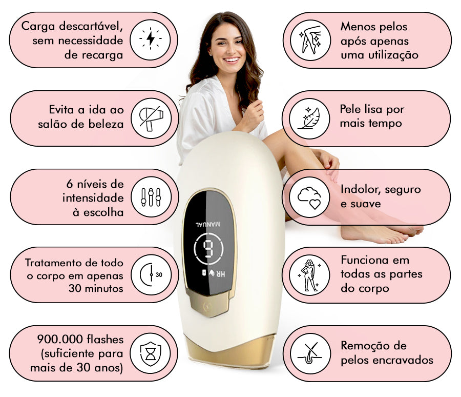 Aqui está a LUMINA, a solução número 1 de depilação em casa que elimina permanentemente o crescimento de pelos onde você não deseja: axilas, pernas, rosto... e sim, até na área do biquíni! Os resultados são visíveis em apenas 3 semanas e os resultados completos em 6 a 12 semanas.